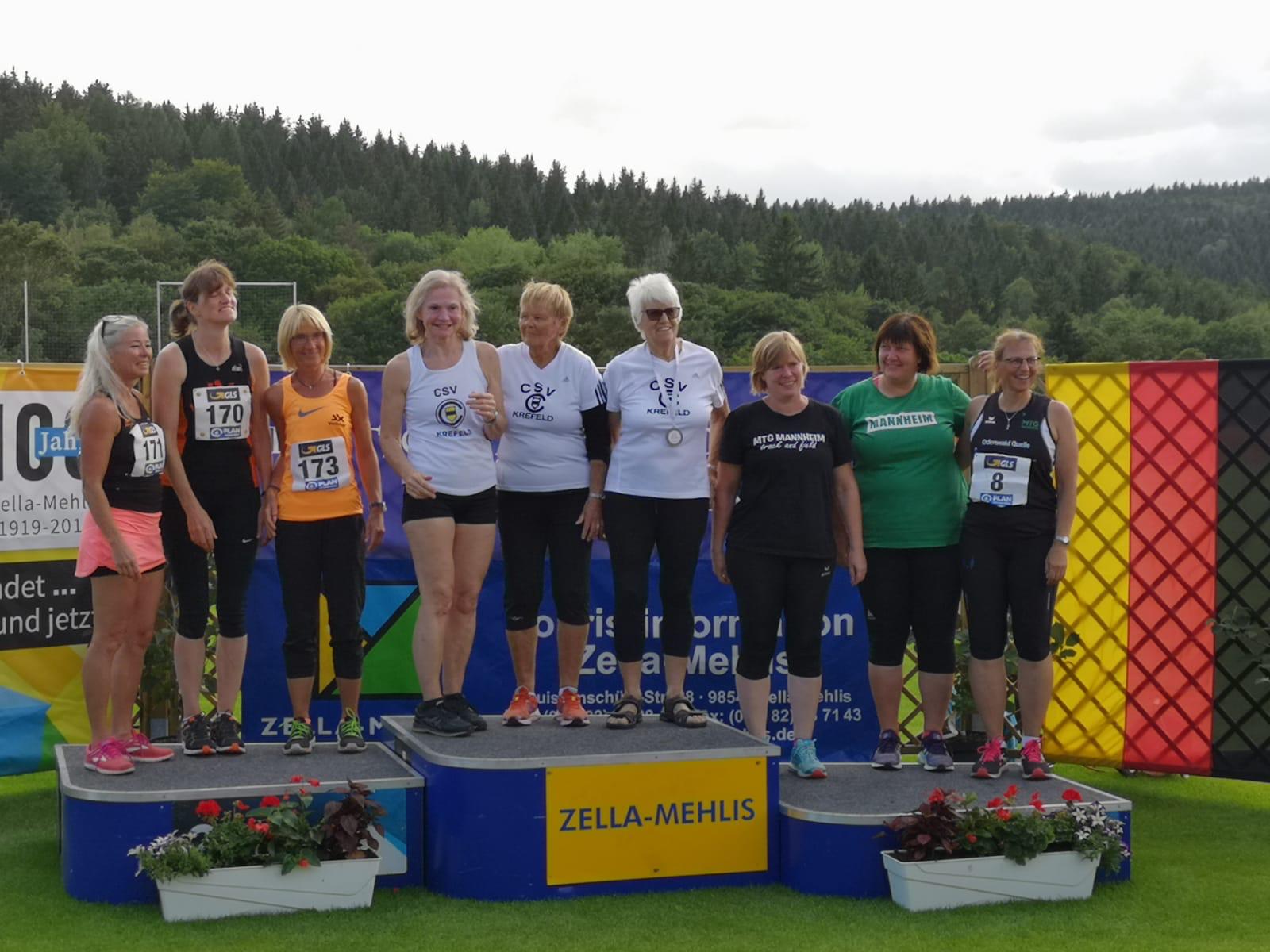 In der W45 erzielte Bettina Schardt (MTG Mannheim) 4014 Punkte. Bärenstark waren ihre 43,60 Meter mit dem Diskus und die 13,69 Meter mit dem Gewicht, aber auch ihre 41,63 Meter im Hammerwerfen, ihre 9,40 Meter im Kugelstoßen und 26,35 Meter im Speerwerfen, die zu diesem seit Jahren in dieser Klasse nicht mehr erreichten Punkteergebnis beitrugen. Ihr Vorsprung betrug gegenüber der Zweitplatzierten über 600 (!) Punkte. Bronze gewann Renate Ansel vom VfL Sindelfingen mit 3.308 Punkten. Schardts Vereinskollegin Dr. Ellen Weller sicherte sich in der W50 die Vizemeisterschaft. Ansehnliche 41,85 Meter mit dem Hammer und 12,06 Meter mit der Kugel verschafften ihr eine solide Grundlage für die 4.009 Punkte. Dazu kamen 31,03 Meter mit dem Diskus, 27,96 Meter mit dem Speer und 13,32 Meter mit dem Gewicht. Ihre Teamkolleginnen Birgit Ott und Sabine Scheffler belegten in der gleichen Altersklasse die Plätze 9 und 12. Die beiden standen zusammen mit Ellen Weller in der Teamwertung nach dem 3. Rang auf dem Treppchen.