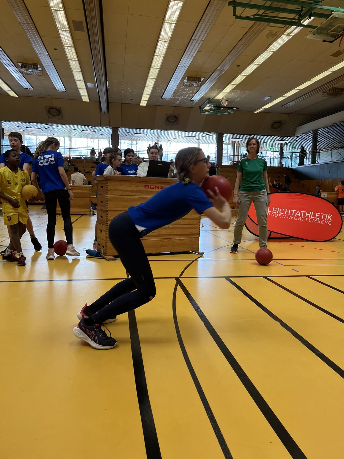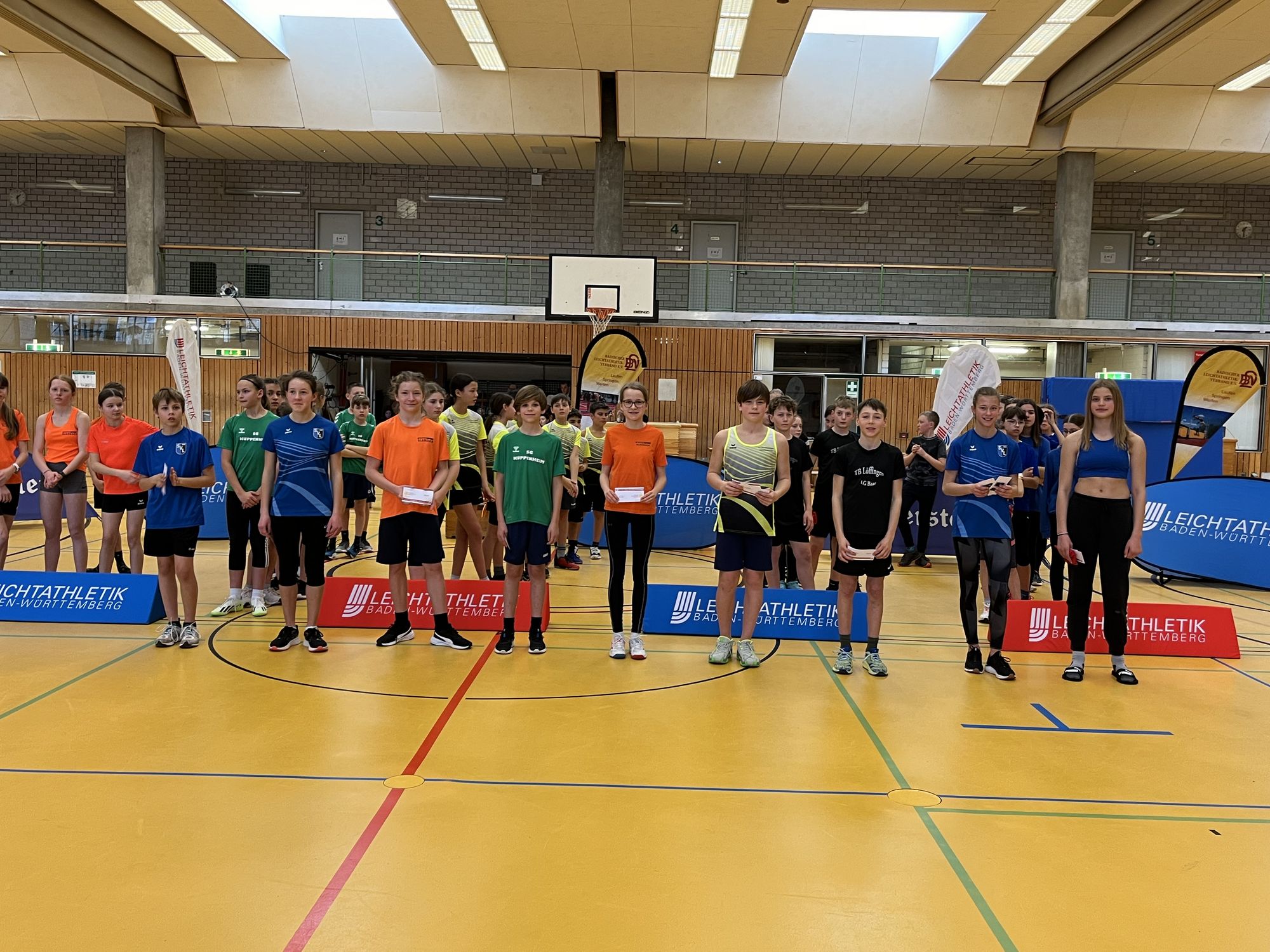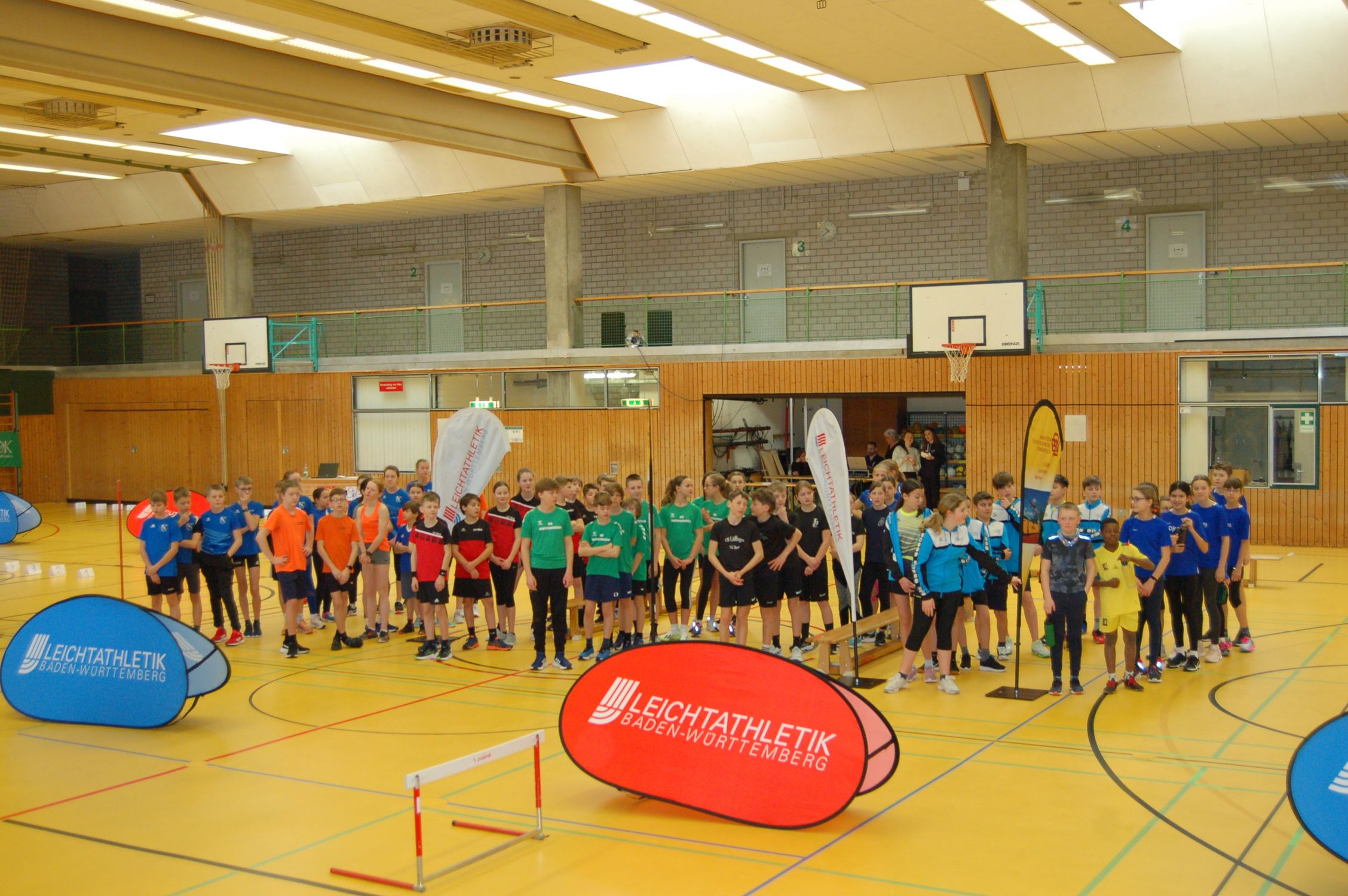 „Diesen U14 Team-Wettbewerb gab es vorher noch nie“, erklärte der Präsident des Badischen Leichtathletik-Verbandes, Michael Schlicksupp, den Kindern, Eltern und Helfer:innen in der Halle des Fritz Erler Gymnasiums. Am Samstag den 9. März fanden sich dort rund 70 junge Athlet:innen ein, um in ihren Teams im Saisonfinale der U14-Teamwettkämpfe zu zeigen, was sie können. Das Ziel der Premiere dieses Kinderleichtathletik-Wettbewerbs in der U14 war es, den Übergang aus der Kinderleichtathletik zu den Einzeldisziplinen zu erleichtern. „Die Jugend soll dabei bleiben und langsam an die eigentlichen Disziplinen der Leichtathletik herangeführt werden. Außerdem macht es einfach Spaß innerhalb eines Teams anzutreten, weshalb dieser Mannschaftswettkampf ein echter Erfolg war“, so Schlicksupp.