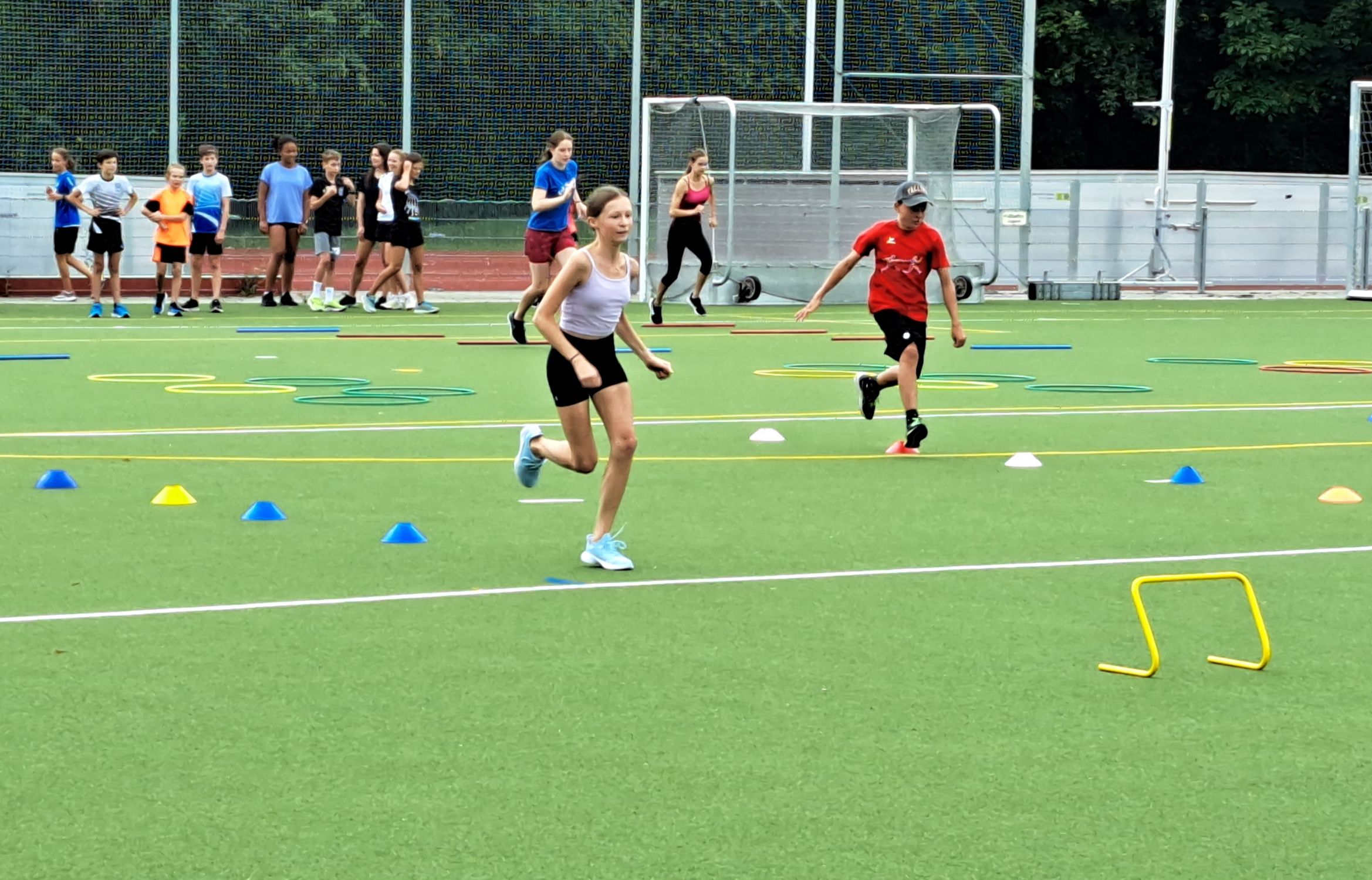 Nach der Begrüßung durch die Camp-Leiter Volker Zahn bzw. Christian Hummel konnte es im Stationenbetrieb losgehen, der in fünf  Leichtathletik-Einheiten fast den ganzen Disziplin-Kanon abdeckte.  Kennenlernspiele sorgten dafür, dass die Gruppen mehr Wissen über ihre Mitglieder anhäuften und sich gemeinsam an die anstehenden Aufgaben machten.