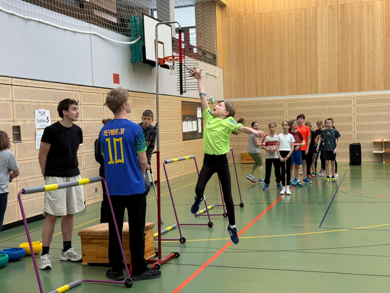 Nach der Begrüßung durch den stellvertretenden Schulleiter Florian Schobloch durchliefen die Klassen verschiedene Stationen, an denen sie leichtathletische Inhalte altersgerecht und spielerisch erprobten. Besonders die kreative Stapelsteinstation bot Raum für individuelle Bewegungserfahrungen und kam bei den Teilnehmenden sehr gut an. Ergänzend erhielten die Schülerinnen und Schüler Einblicke in die Vereinsleichtathletik durch anwesende Athletinnen und Athleten. Die Vereinsvertreterin Frau Rosenfelder konnte krankheitsbedingt leider nicht teilnehmen.
